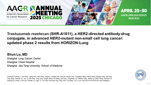 2025 AACR口头报告|AG庄闲创新药瑞康曲妥珠单抗治疗晚期HER2突变非小细胞肺癌研究结果披露